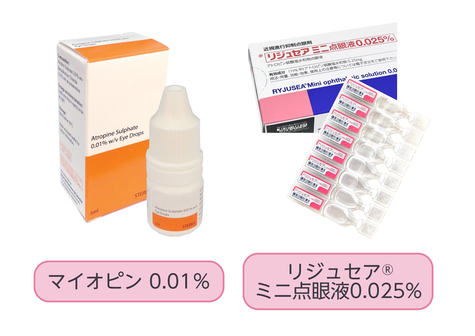 低濃度のアトロピンを使用するため、副作用が少ないです。他の濃度に比べて瞳孔拡大や光過敏などの副作用が軽減されます。